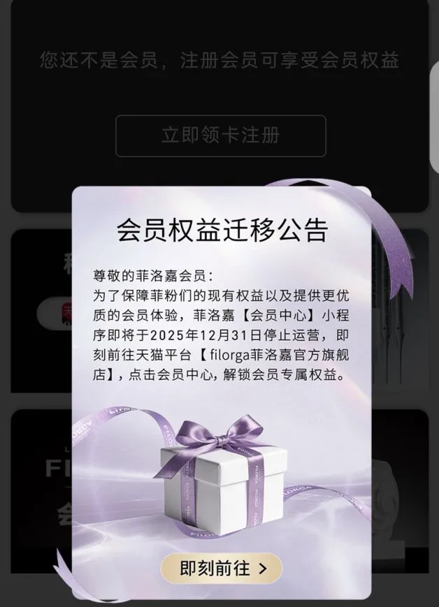 1月4日,记者咨询Filorga菲洛嘉官方旗舰店客服,其表示,以店铺官方公告为准。Filorga菲洛嘉微信小程序会员中心显示,已于2025年12月31日停止运营。